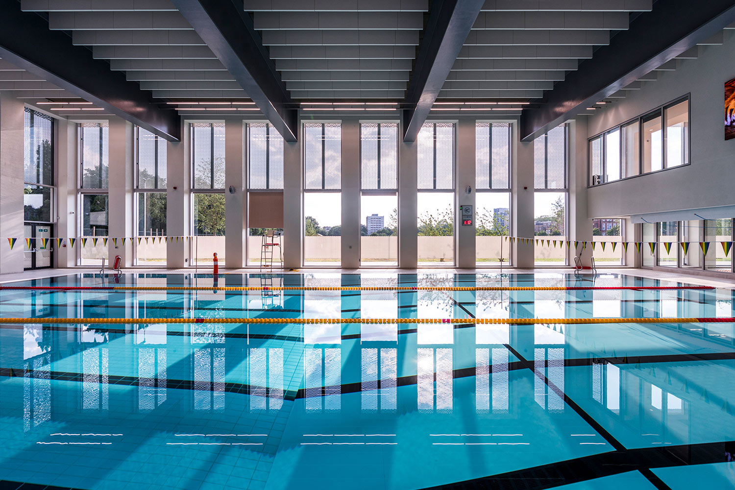 This state-of-the-art facility has both indoor and outdoor pools, as well as a steam room, sauna, and hot tub. The indoor pool has six lanes for lap swimming, and the leisure pool has a wave machine and a water slide. The facility is open year-round, with varying hours depending on the season.